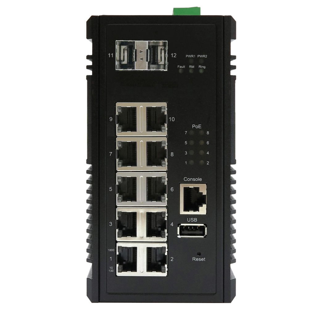 10+2 Port Industrial Managed PoE+ Gigabit Ethernet Switch